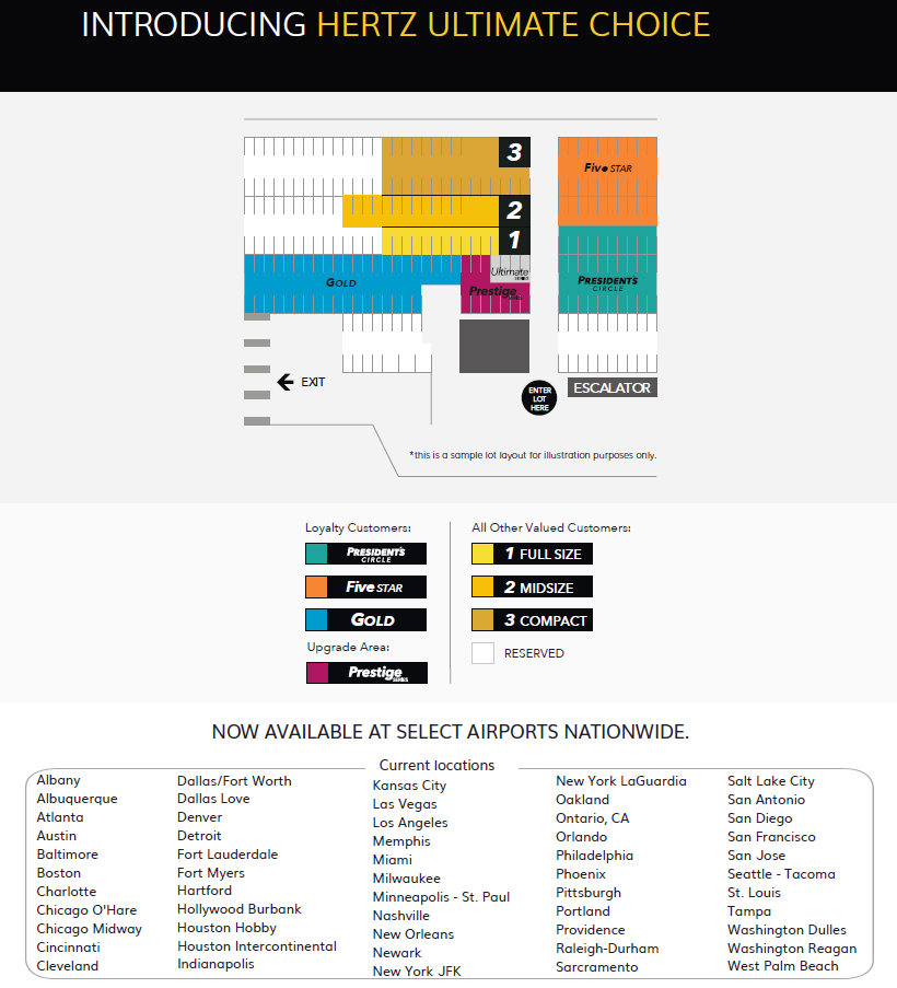 Hertz Ultimate Choice is an expansion of Gold Choice, Gold Plus Rewards, members who book a Mid-size car or higher get access to exclusive cars based on their status.